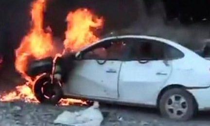 DAMASCO - Un’auto incendiata dopo il bombardamento del distributore di benzina